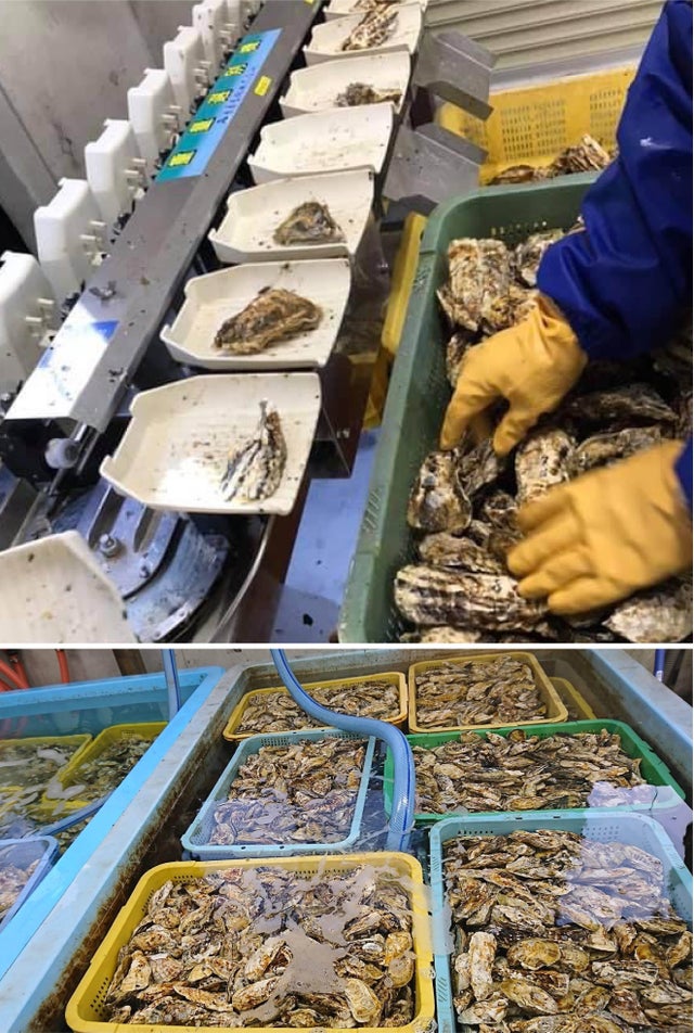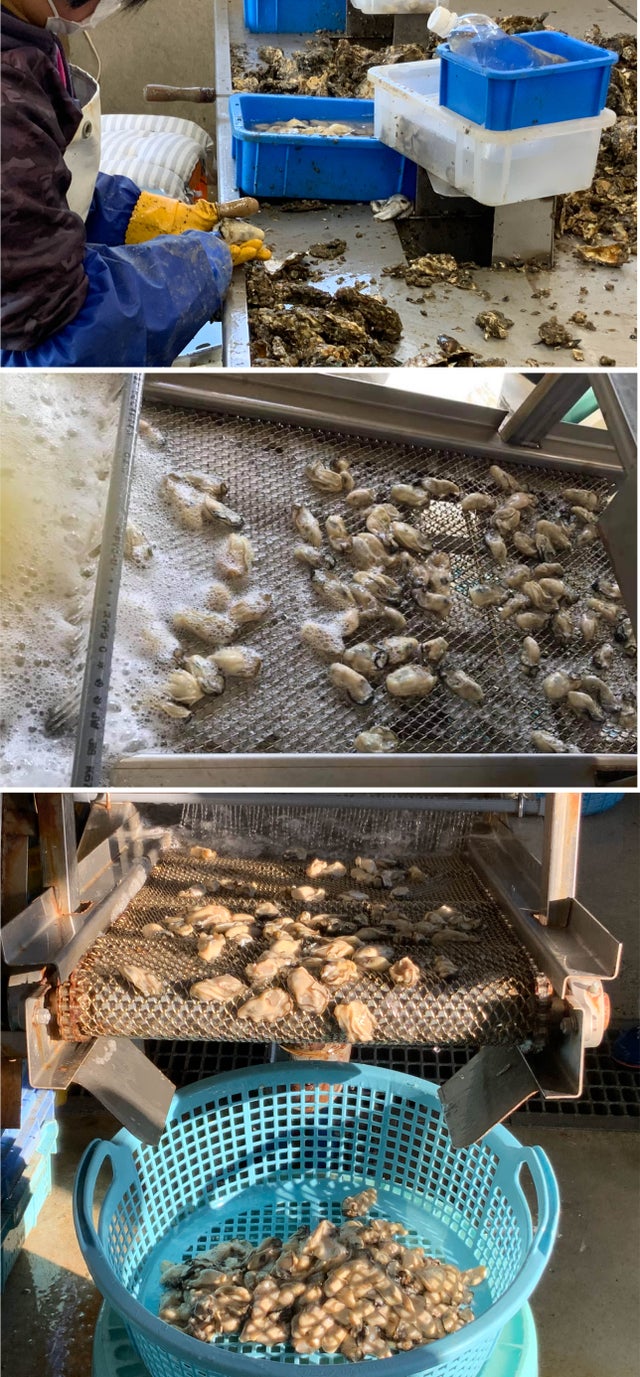 ピカピカにした牡蠣は一つ一つ丁寧に重さを測り選別して出荷していきます。