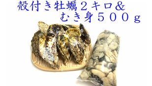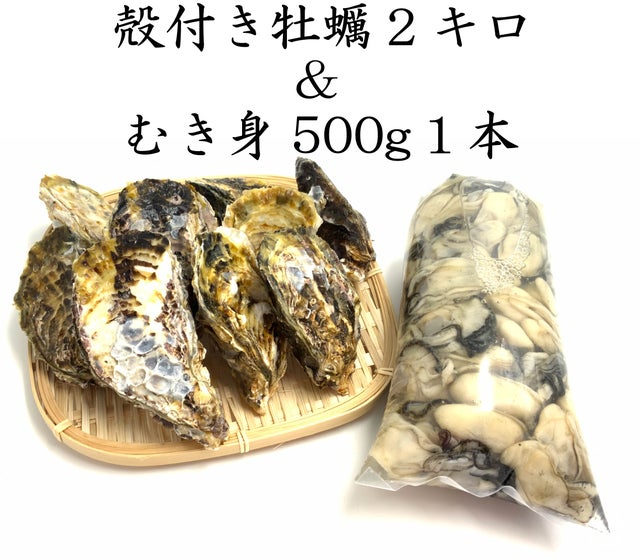 ・殻付き牡蠣2キロ×1箱とむき身500g×1本のセット