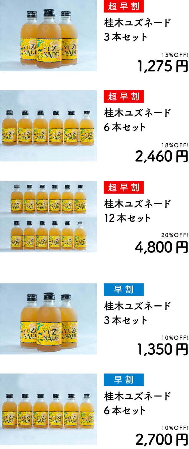 【早割10%オフ!】桂木ユズネード300ml 6本セット