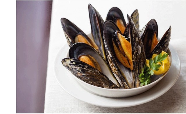 気仙沼唐桑町産「超特大ムール貝」蒸焼 レモンの大きさと比べてください。