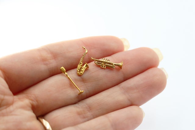 - トランペットやサックスなどの金管楽器の色合いと純金素材の抜群の相性。