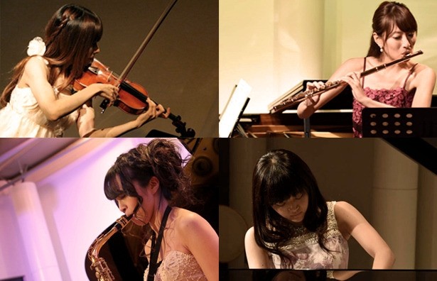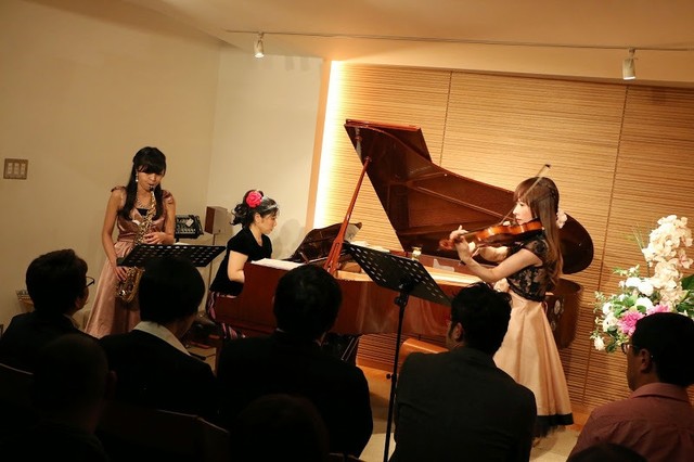 楽器編成は、ヴァイオリン、フルート、クラリネット、声楽、ピアノ等によるアンサンブルで出張して生演奏させていただきます。