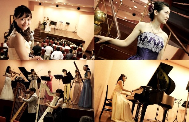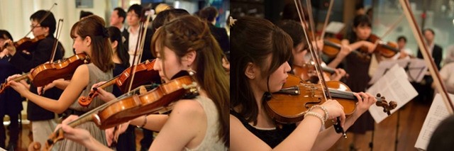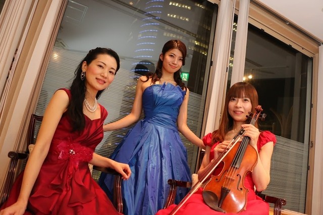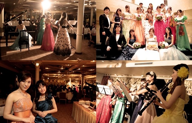 楽器編成は、ヴァイオリン、フルート、クラリネット、声楽、ピアノ等による合奏、およびアンサンブルで出張して生演奏させていただきます。