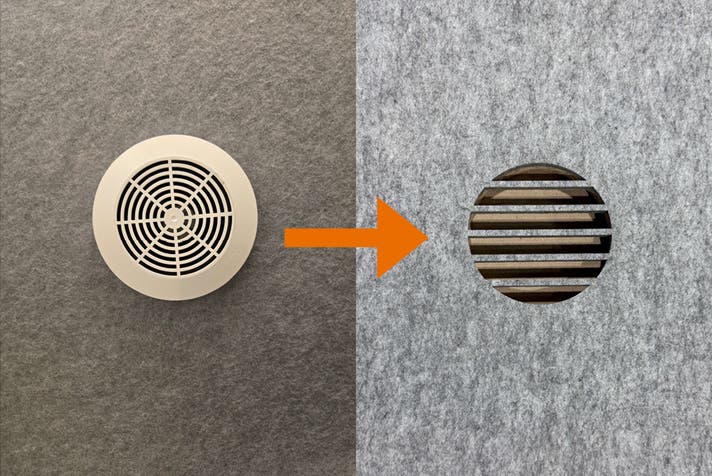 従来のプラスチック製換気口(B–Free 1.0)から、ブース一体型の換気口に変更。
