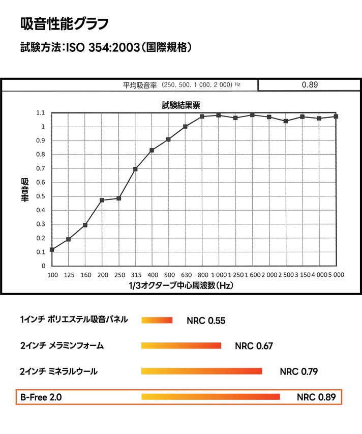 B-free 2.0の優れた音響コントロールは、独自開発の素材によって実現されています。