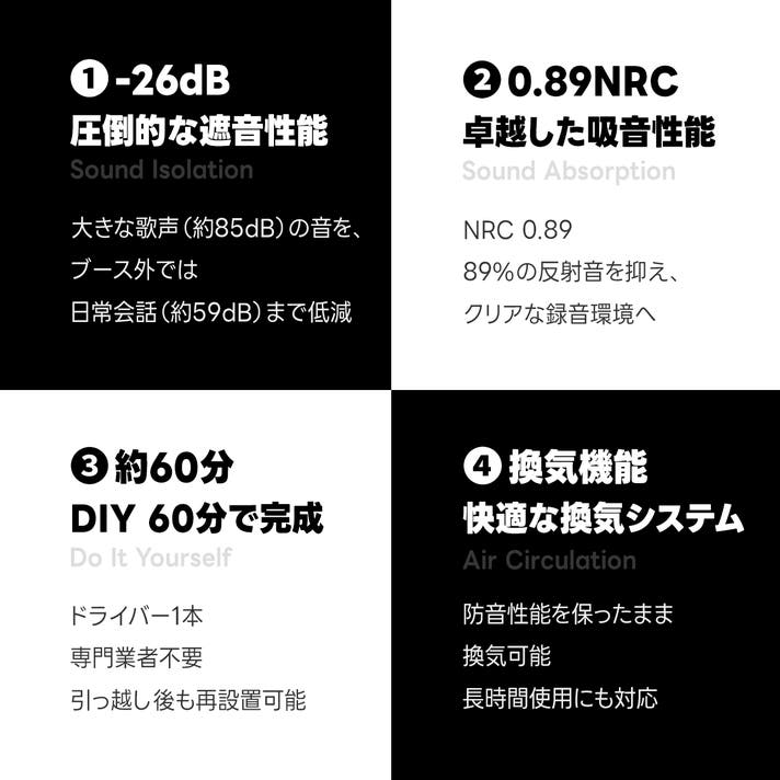 そのため、近隣や家族への音漏れを気にすることなく、夜遅くまで自由に歌ったり作業したりできます。