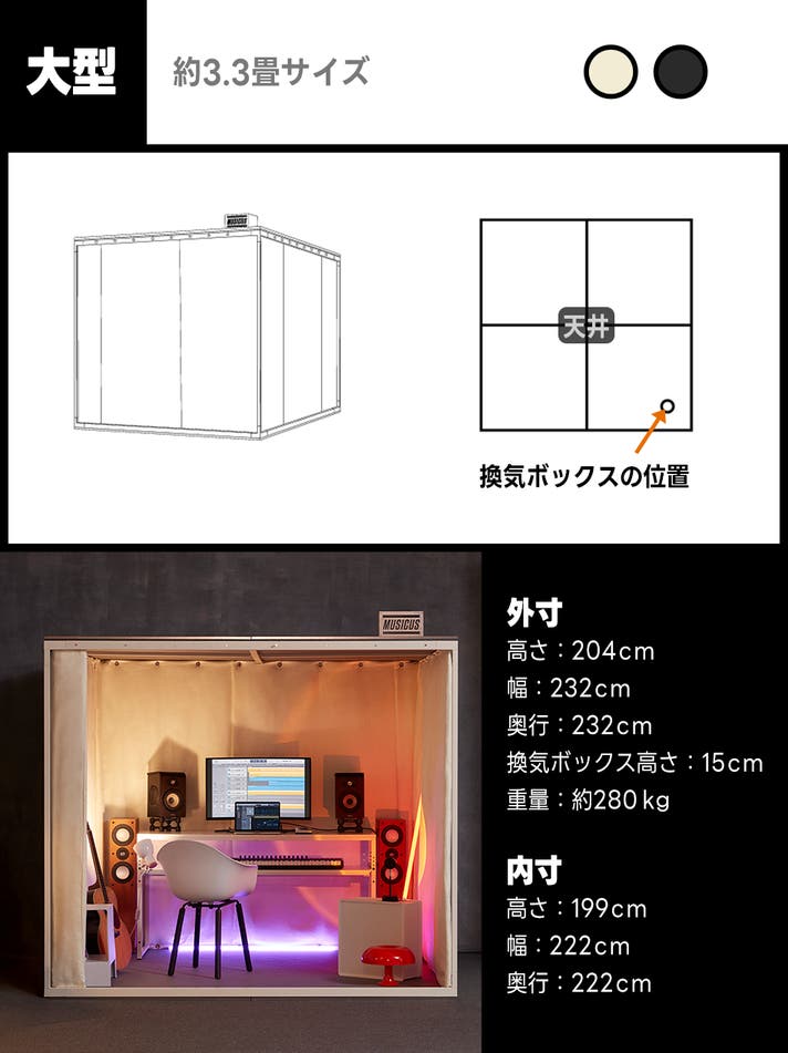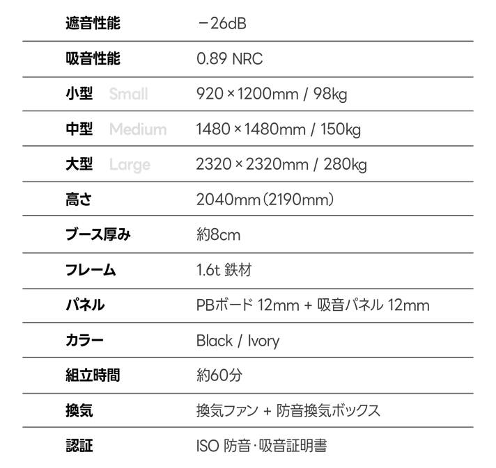 人それぞれ、必要な環境は違います。ボーカル録音中心ならSmall。コンパクトにまとめたいならMedium。楽器や機材のスペースが必要ならLargeが最適です。