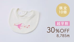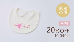 そして今回は、同じ生地でスタイも製作。スタイの真ん中には、第1弾でご好評いただいた絵本「サプナとゆめの木」のイラストをプリントしました。絵本と合わせて、色褪せない思い出を。