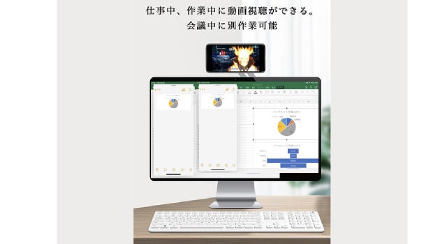 - 在宅勤務や職場、自宅学習で大活躍。スマホとパソコンが2画面同時で作業効率UP