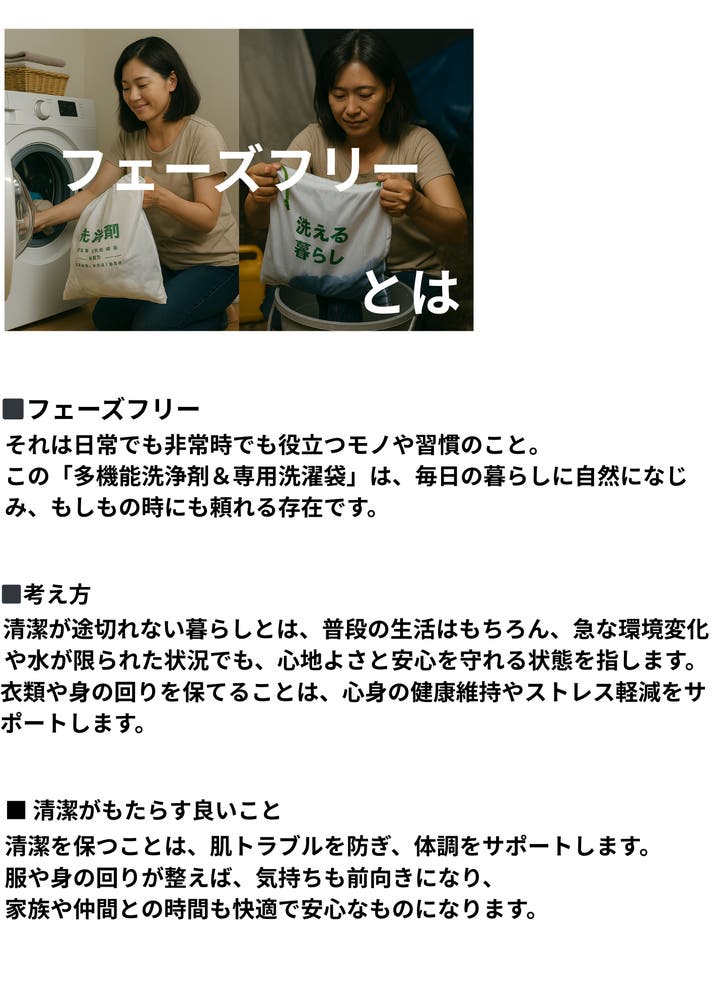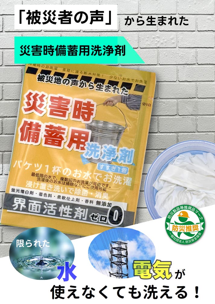 「被災者の声から生まれた災害時備蓄用多機能洗浄剤 — 洗濯問題を解決するために」