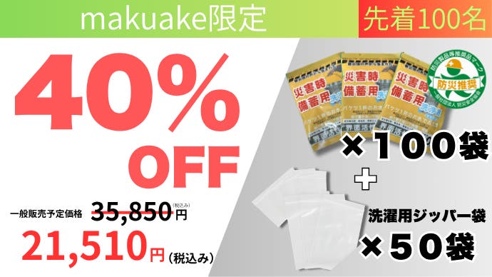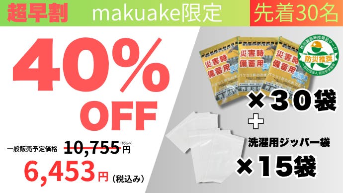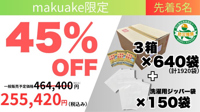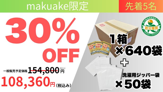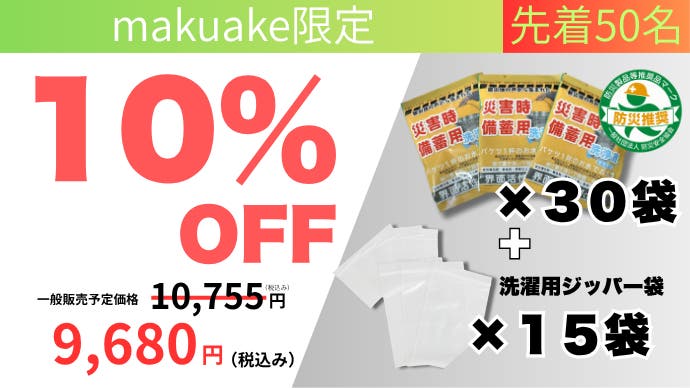 「Makuake(マクアケ)」は、実行者の想いを応援購入によって実現するアタラシイものやサービスのプラットフォームです。このページは、 社会貢献カテゴリの 「フェーズフリーを目指す。忘れがちな洗濯問題を解決し清潔を確保する災害時備用洗浄剤」プロジェクト詳細ページです。