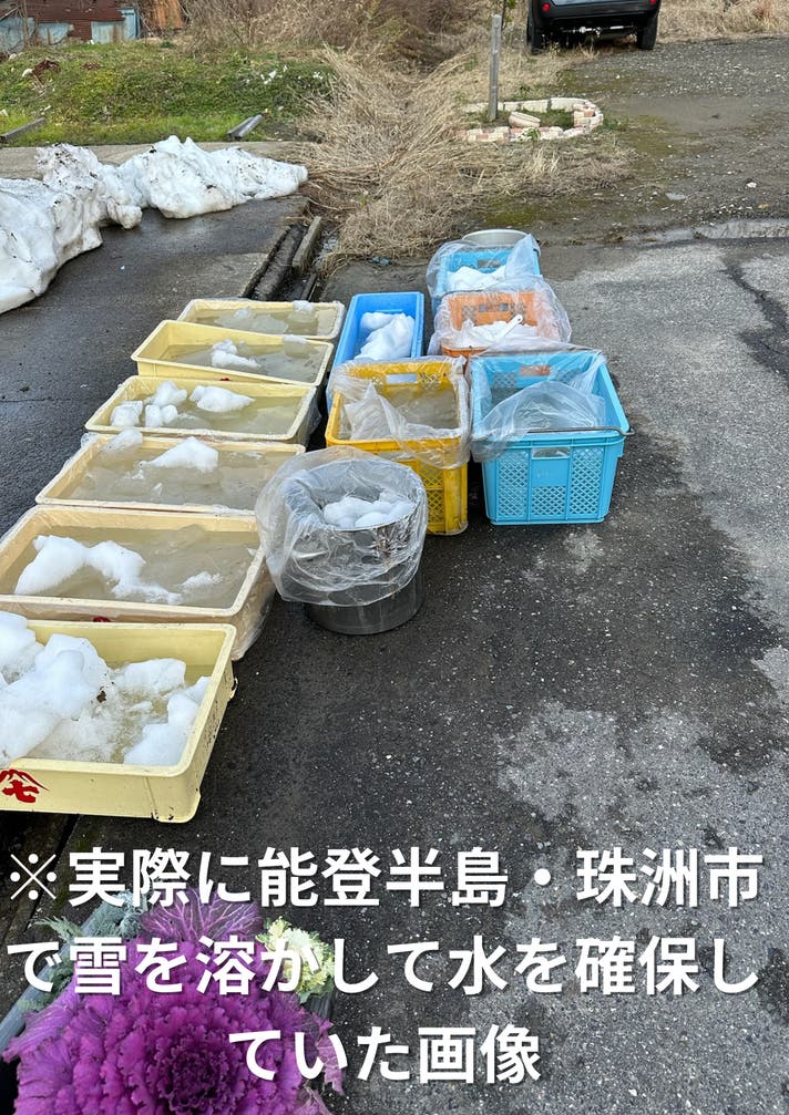 ある方は、生活用水を確保するために20Lのポリタンクを10個=200Lを毎日軽トラックで運んでいたそうです。