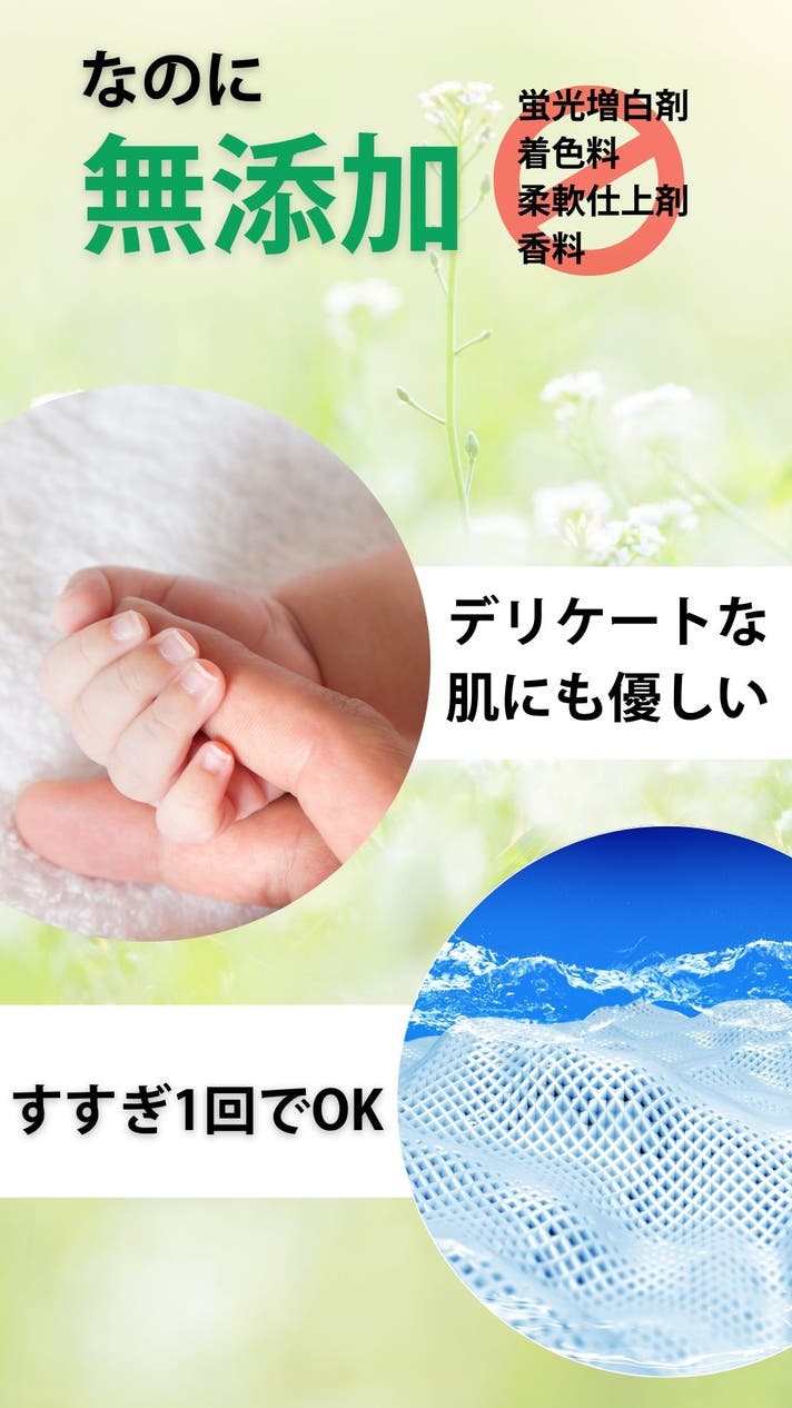 すすぎがほとんどいらないため、通常の1/10の水量で洗濯が可能です。