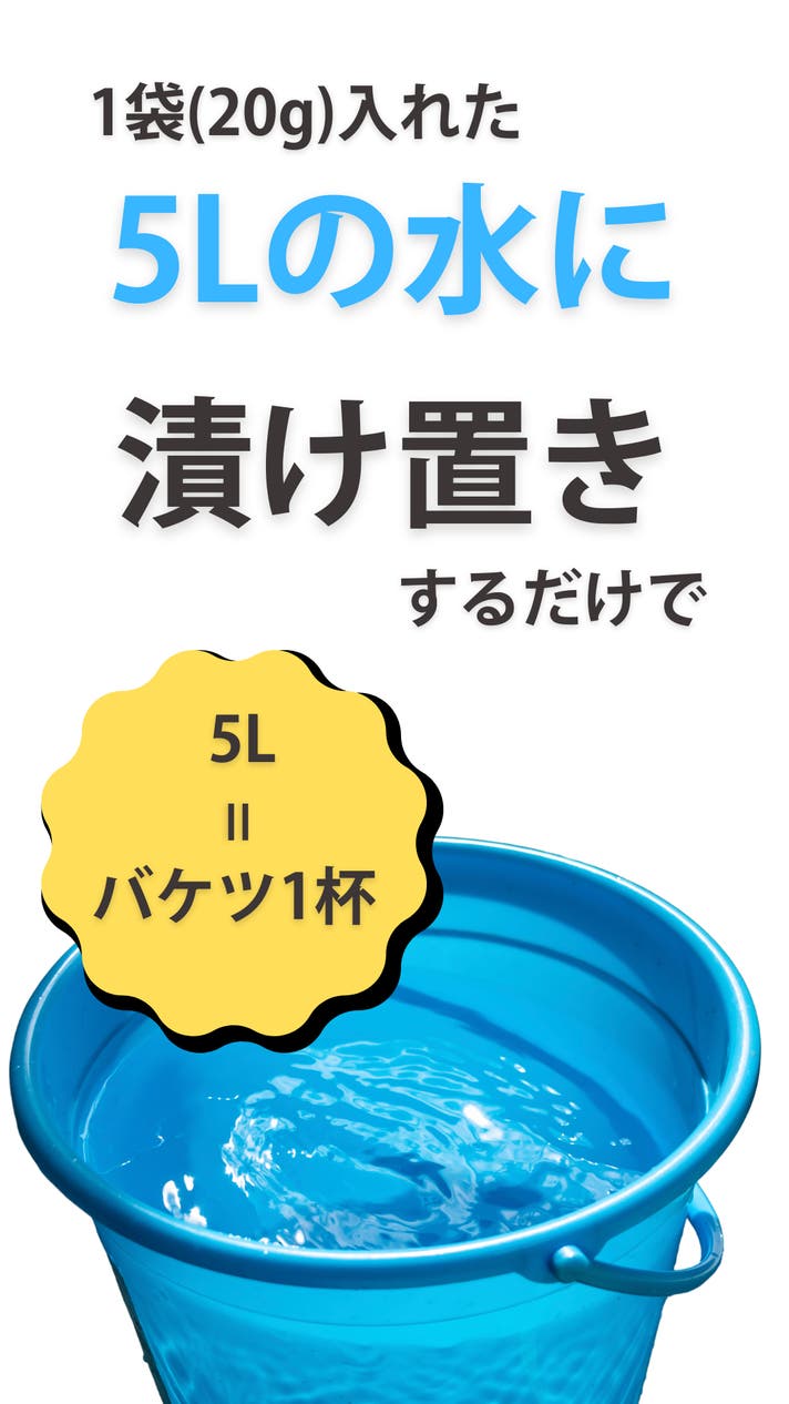 使用目安 洗濯機5キロに対し1袋(20g)もしくは、水5リットルに対し1袋~2袋