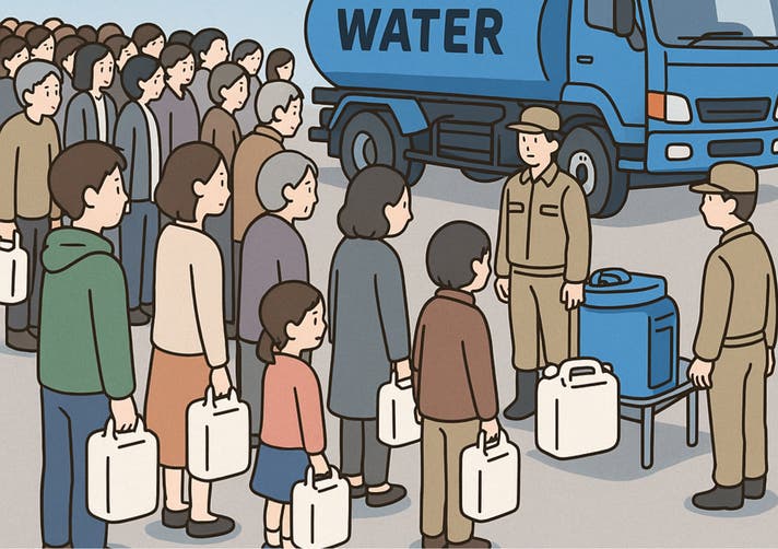 「東日本大震災の光景にもあるように、水を求める行列は災害時の現実そのものです。」