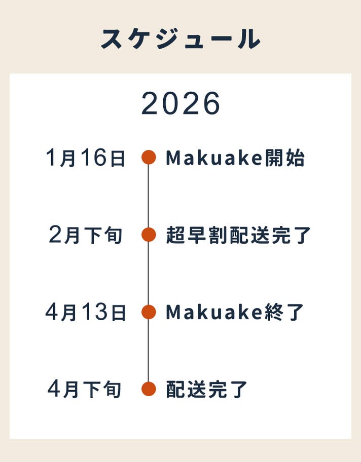 ■ご注文期限:2026年2月16日(月)16:00までにお支払い・入金を完了(現金決済を含む)が対象となります。それ以降にお支払いされた場合は、通常通りプロジェクト終了後の配送となります。