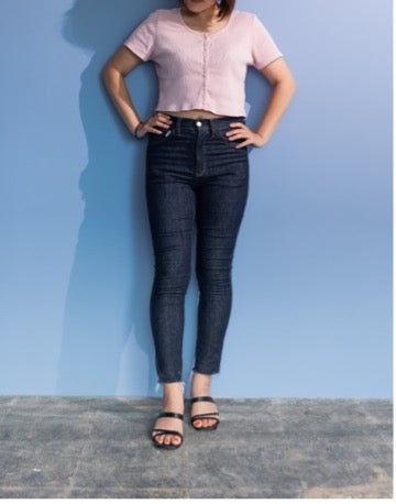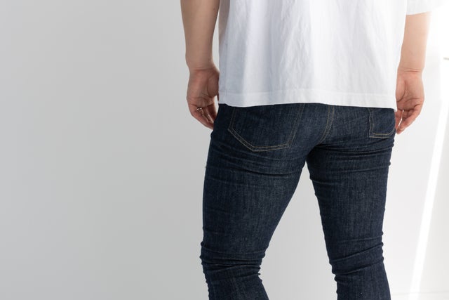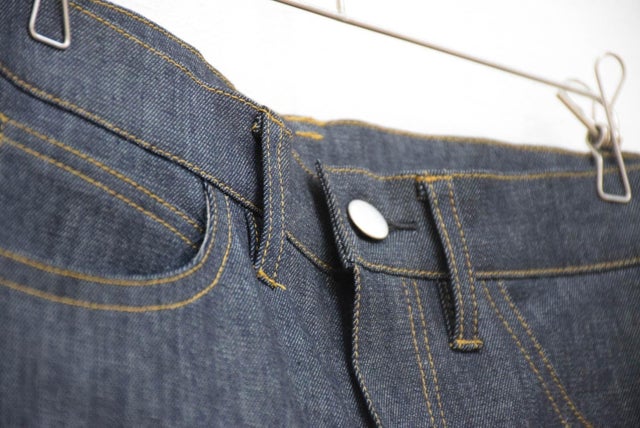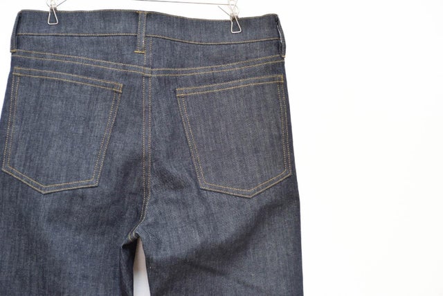 生地にはトルコのデニム素材メーカーの『ISKO™️』を使用しました。この素材は、ストレッチ性と風合いをあわせ持つ生地です。ストレッチ性がある生地のため、ウエストや骨盤まわり、お尻まわりを少し大きめにしても生地の伸びでサイズを吸収して1サイズでも、対応できる体形を広くしています。