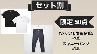 【セット割】スキニーパンツ×1、ロゴ入りTシャツ×1[ホワイト]or[ブラック]