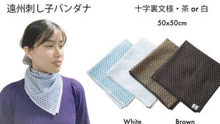 遠州刺し子バンダナ(十字裏文様・茶or白)
