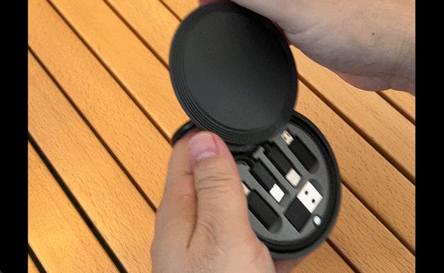 - 手のひらサイズのケースに6種類の接続ポートに対応するアダプタとケーブルをまとめて収納