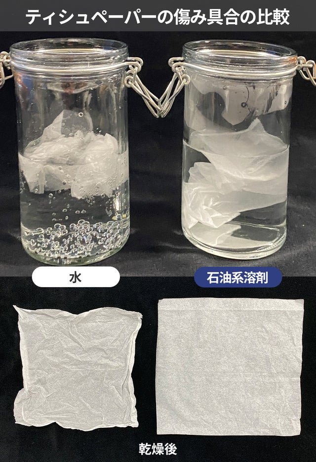 油性界面活性剤で衣類全体を油性化して繊維を保護します。