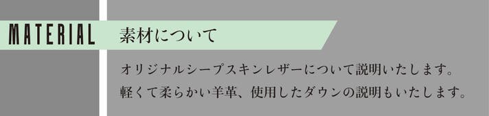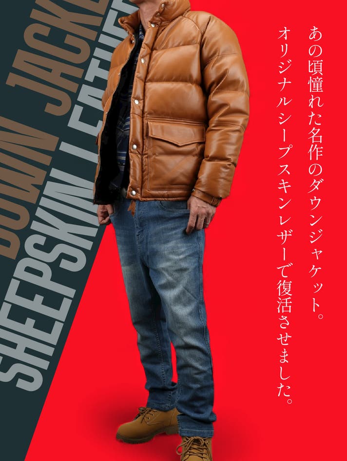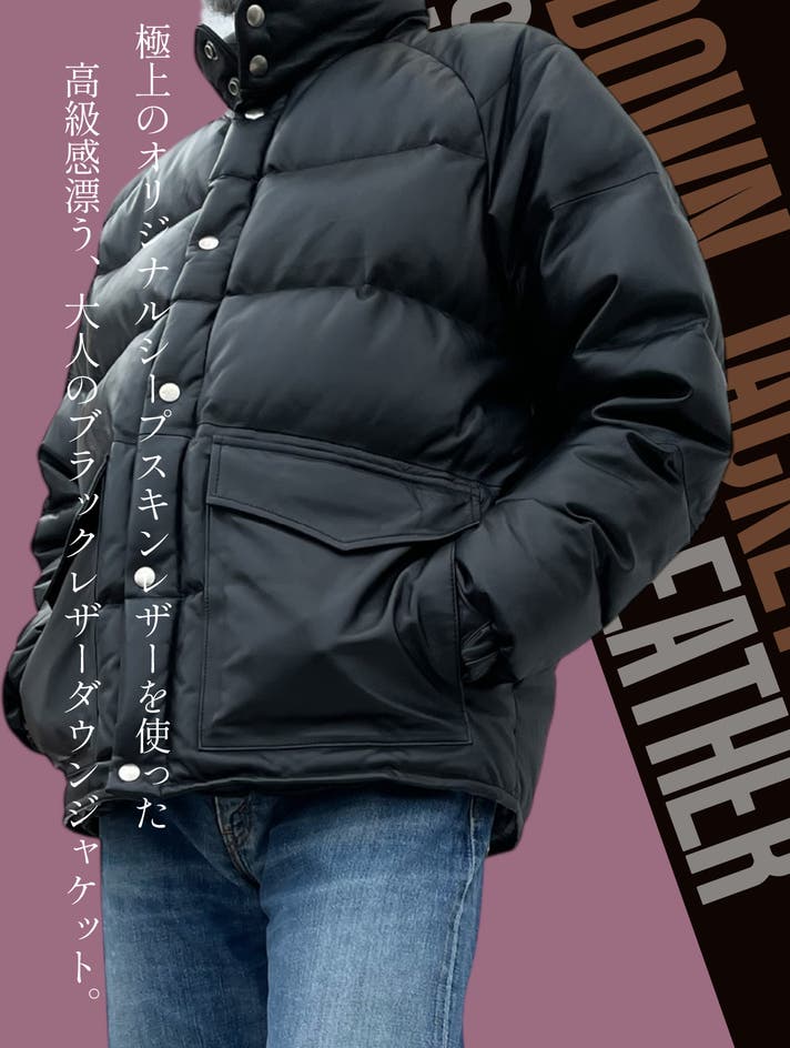 あの時代の記憶を胸に、今の大人が誇りをもって羽織れる質感で蘇らせたオリジナルシープスキンレザーのダウンジャケットです。