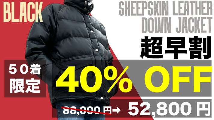 【超早割】40%OFF!シープスキンレザーダウンジャケット【カラー:ブラック】