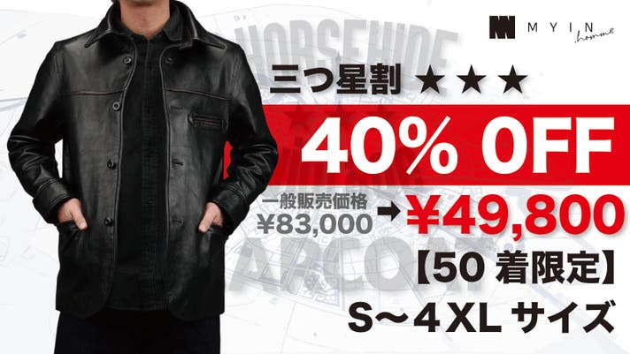 【三つ星割★★★】40%OFF ヴィンテージカーコート S_4XL【50着限定】