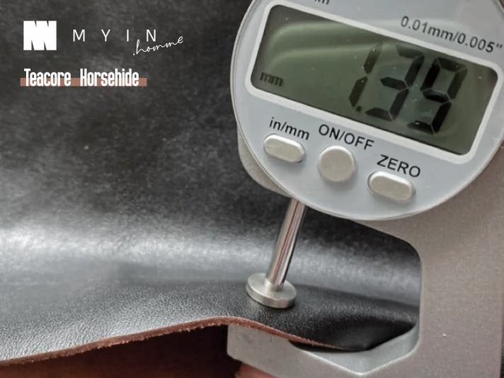 素材は赤みのかかった銀面に、馬革独特の濡れたような美しいツヤとシボのある、タンニン渋なめし1.3mm厚のホースハイド(茶芯馬革)です。
