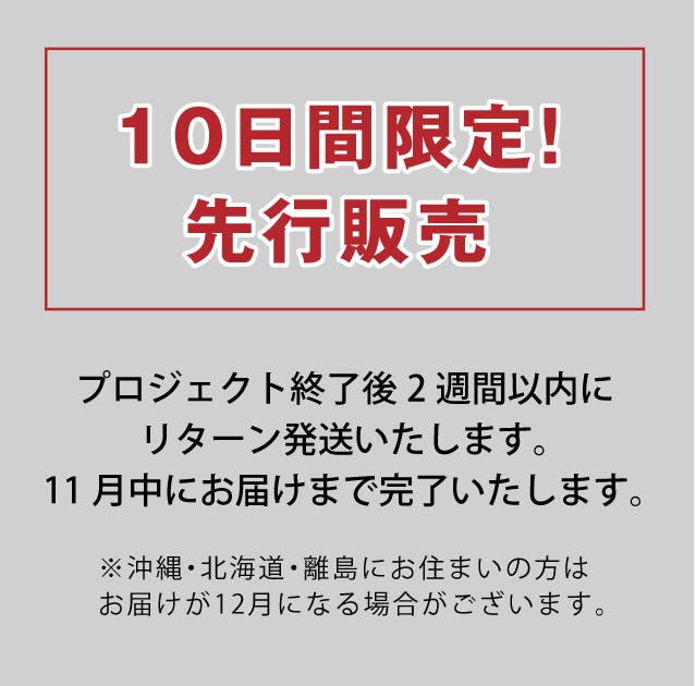 ※一部国内に類似品が出回っている可能性がございます。 弊社では他社の類似品に関してのお問い合わせには対応できませんので、ご了承ください。弊社商品のオリジナル性については、上記プロジェクトに関する情報をご覧ください。 ※本文中に記載させていただいたスケジュールは、あくまでプロジェクト公開時点の予定です。応援購入の性質上、配送遅延のおそれがございます。原則として、配送遅延に伴う応援購入のキャンセルはできませんが、リターン配送予定月から3ヶ月を超えた場合には、希望者に限りキャンセルにて対応させていただきます。