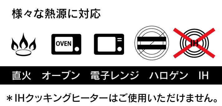 対応熱源:直火、オーブン、電子レンジ、ハロゲンヒーター
