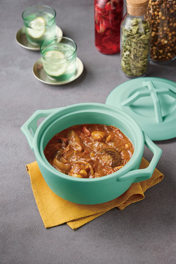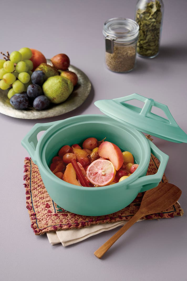 無水調理や煮込みはもちろん、蒸し料理やオーブン料理までこれ一つ。テーブルに出しても映える存在感で、食卓を豊かに彩ります。