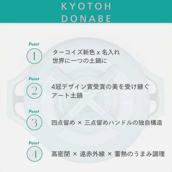 KYOTOHブランドと日本の伝統工芸であるDONABEの素晴らしさを海外の人たちに伝えていくことをミッションに、グローバルな視点を意識し、あえてベーシックな色ではなく、海外の人々も好む、目を引くビビッドなスペシャルカラーを選びました。