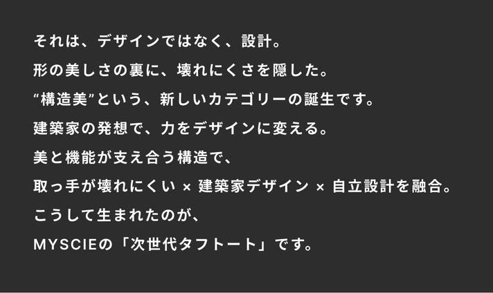 「Makuake(マクアケ)」は、実行者の想いを応援購入によって実現するアタラシイものやサービスのプラットフォームです。このページは、 ファッションカテゴリの 「【一級建築士監修】もう倒れない“構造美”で魅せるタフ・トート|バッグの完成形」プロジェクト詳細ページです。