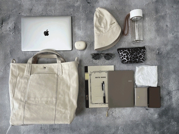 Myselfトートにどんなものが入るか、男性・女性スタッフそれぞれの私物で試してみました!
