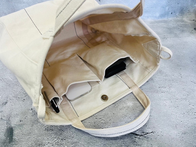 たくさんものを入れても、口が広がらずピタッとくっついて、バッグのシルエットをきれいに保ったまま収納できます!