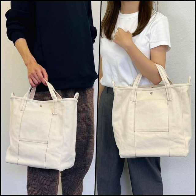 ショルダーバッグやハンドバッグとして使った時のイメージを、スタッフが実際に手に取ってみました。