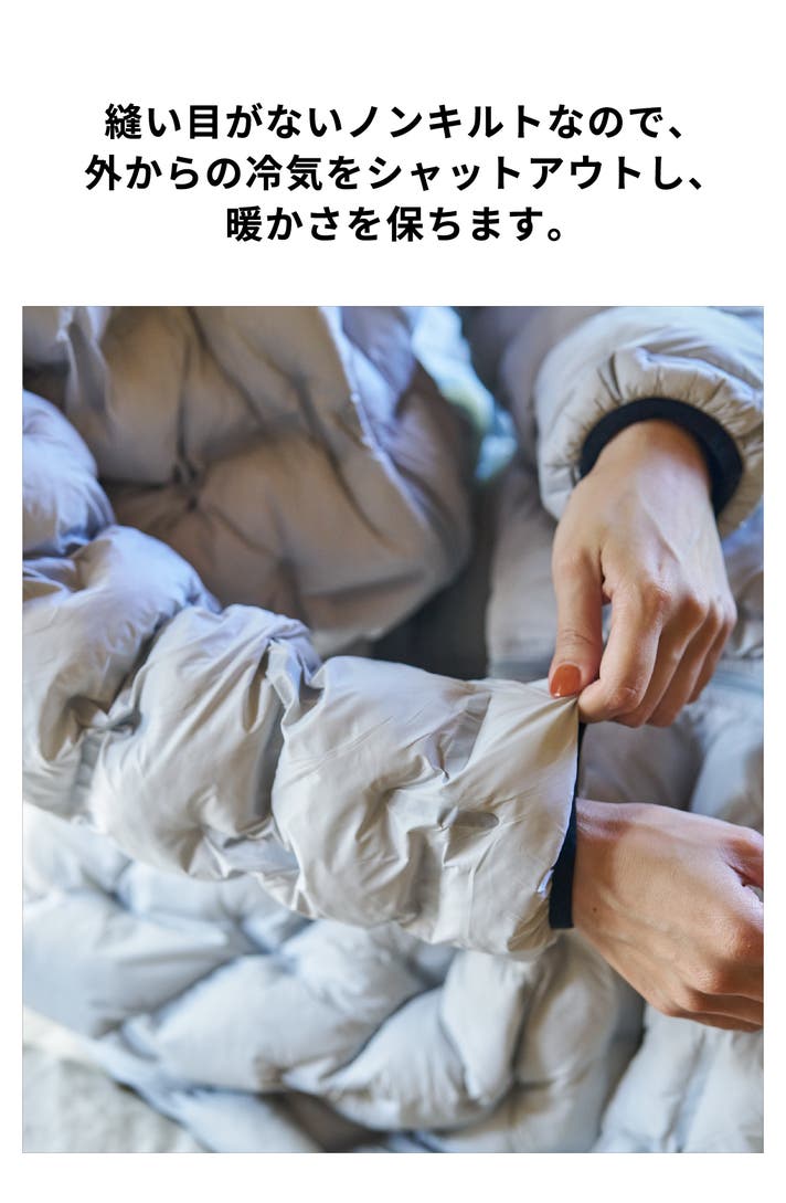 冷気の通り道になる縫い目をなくしたノンキルト仕様。寒い日も心地よい暖かさであなたを包み込みます。