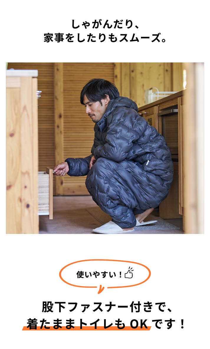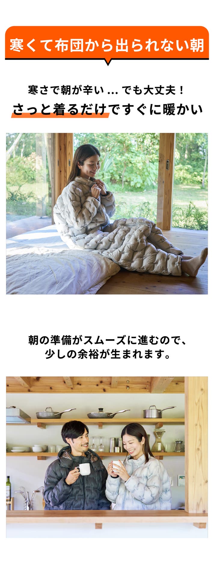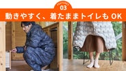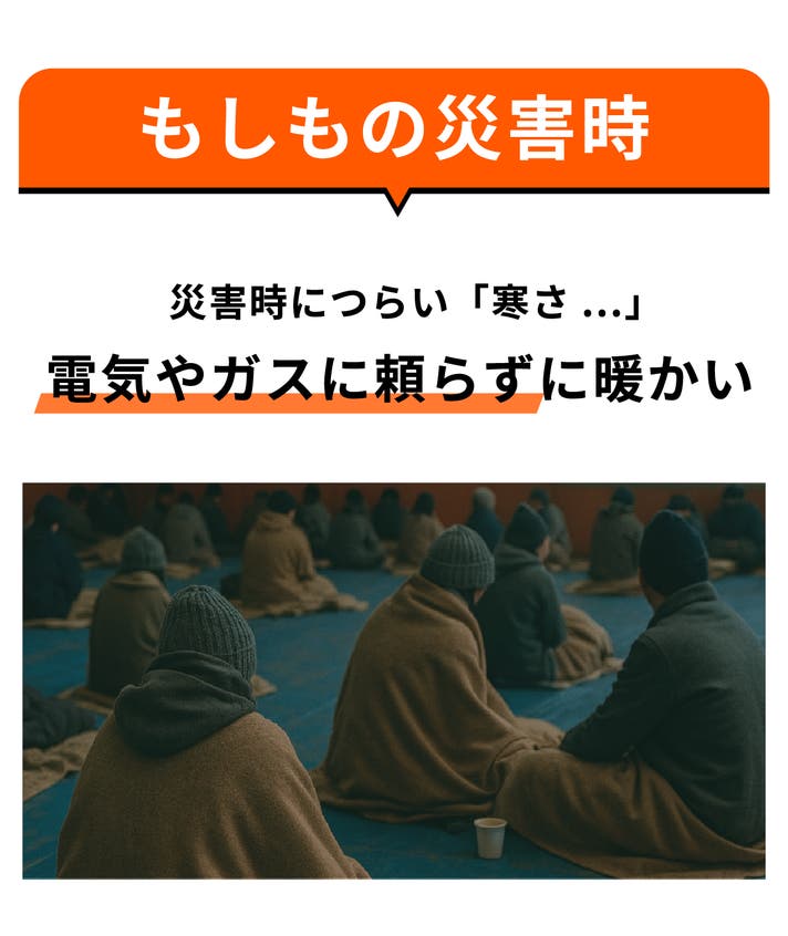 そんな「もしも」の時も、体温でしっかり暖か。着たまま動けるから、避難行動や寒い避難所生活でも心強いです。