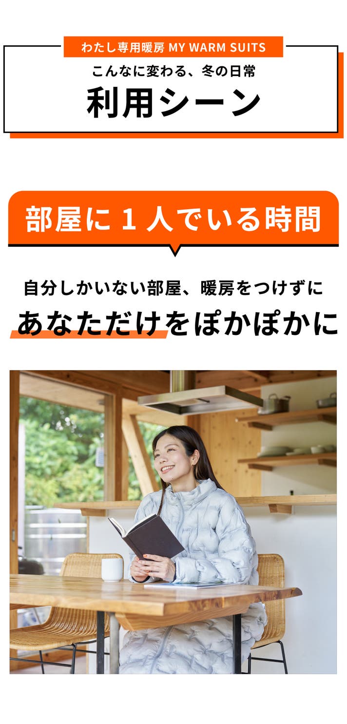冬の電気代の高騰...「部屋全体を暖めずに、自分だけを心地よく暖められないだろうか?」そんな想いから、MY WARM SUITS の開発は始まりました。
