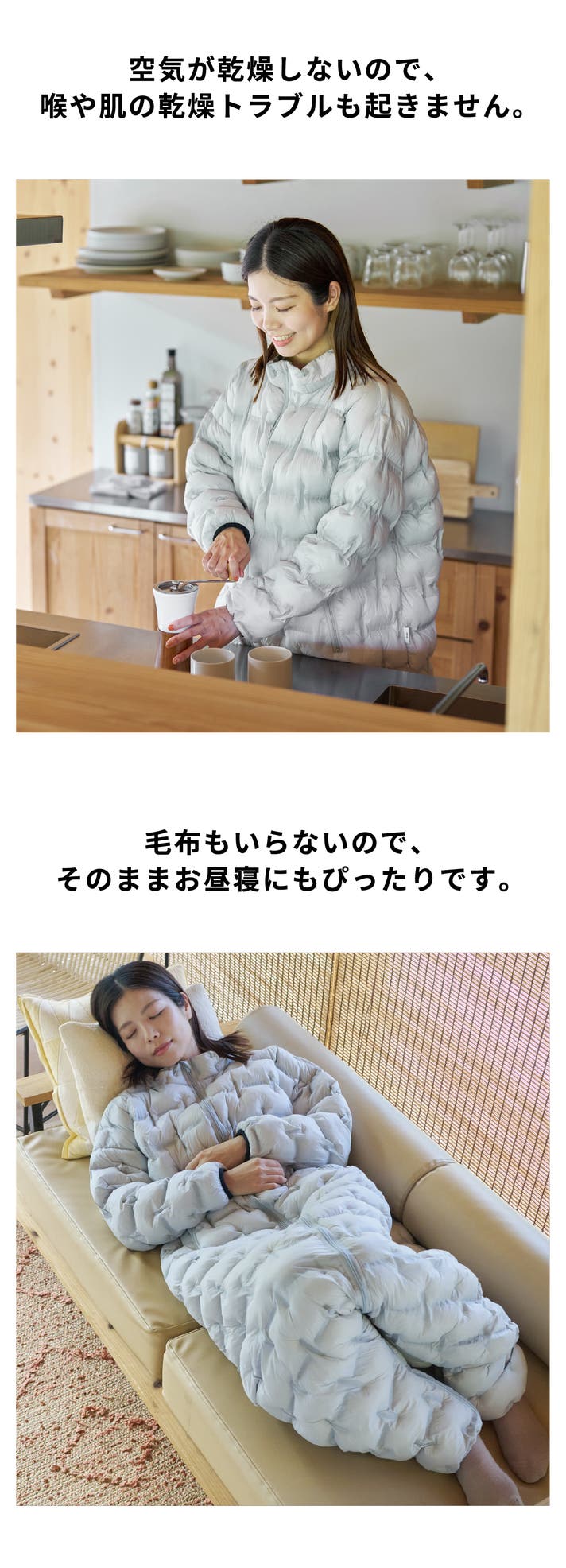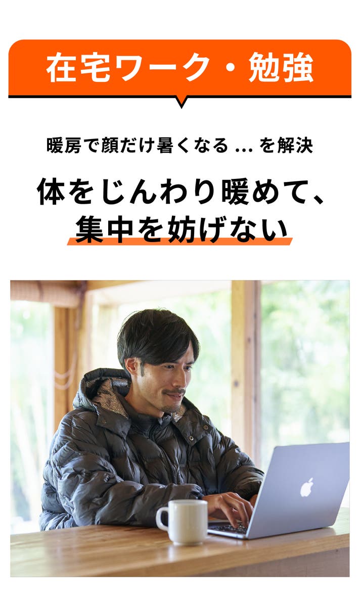 暖房のせいで頭がぼんやり…そんな経験ありませんか?MY WARM SUITSなら体温でちょうどよく温まり、快適に集中できます。