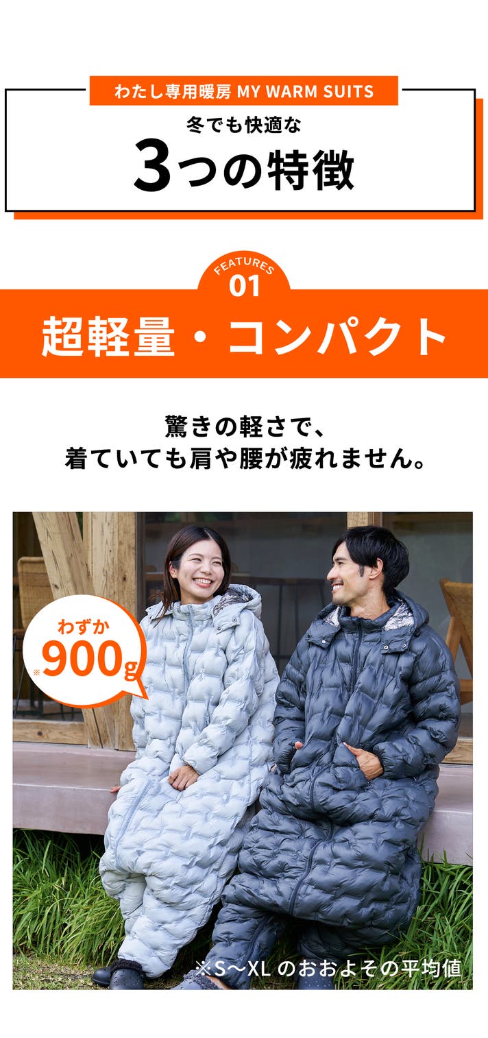 - 【驚くほど軽く、コンパクト】わずか900gで今年の冬を乗り越える、次世代の節電スタイル。
