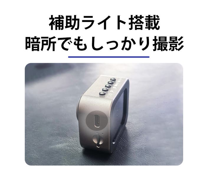 暗所での撮影を助ける補助ライトが搭載されており、夜間や室内でも被写体を明るく捉えることができます。明るさをしっかり補えることで、撮影できるシーンの幅が広がり、日常の記録がより自由になります。
