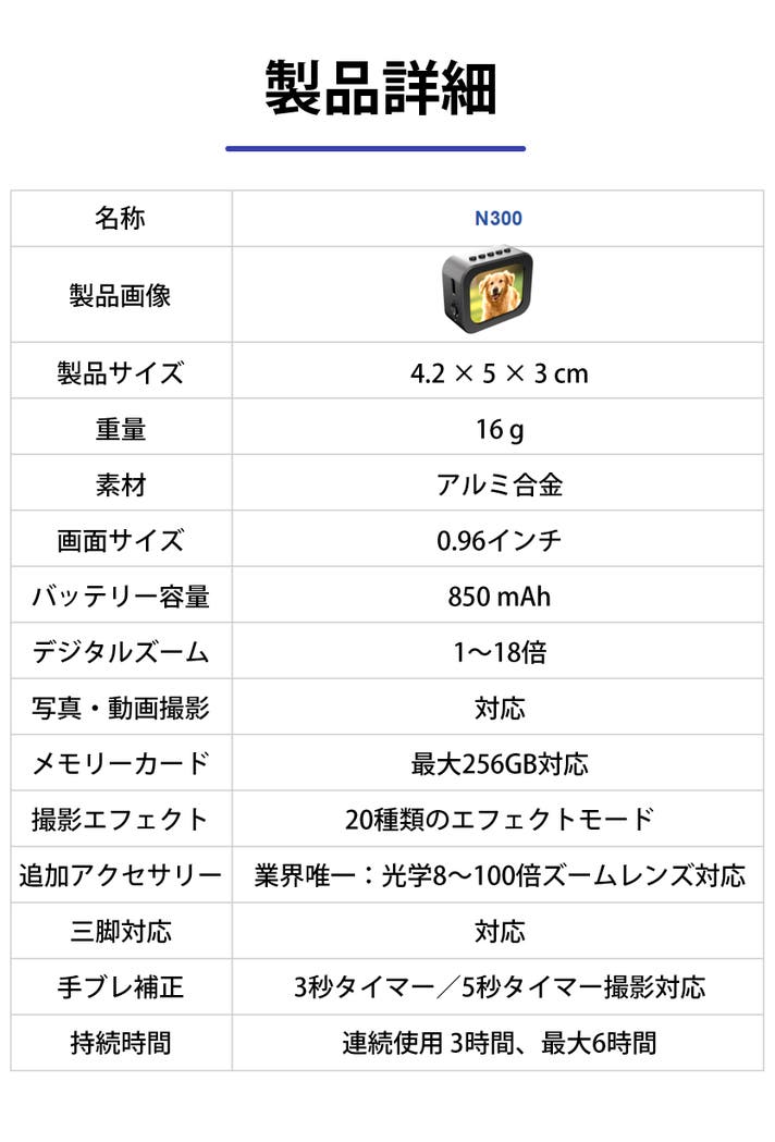 【マクアケ割】超高性能ミニカメラN300 x 1個