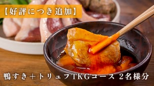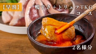 【好評につき追加】鴨すき+トリュフTKGコース2名様分+会員特典