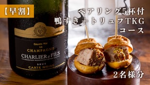 【早割】ペアリング5杯付 鴨すき+トリュフTKGコース2名様分+会員特典