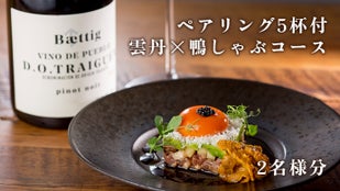ペアリング5杯付 雲丹×鴨しゃぶコース2名様分+会員特典