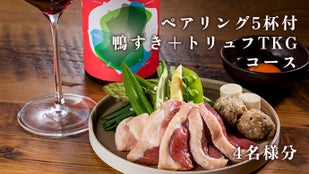 ペアリング5杯付 鴨すき+トリュフTKGコース4名様分+会員特典
