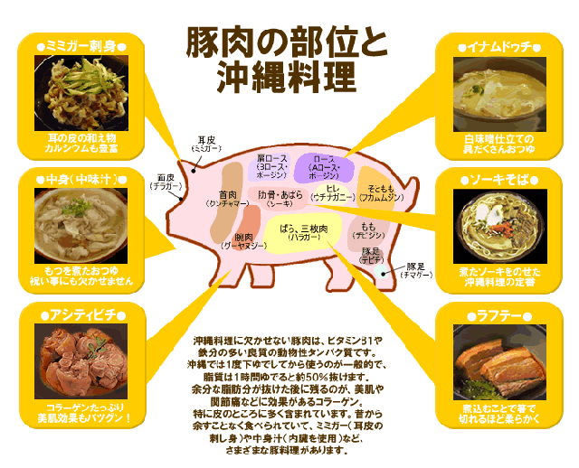 豚肉を使う料理といっても調理法と種類は多岐に渡り、沖縄料理に豚肉は必要不可欠と言っていいほど重要です。