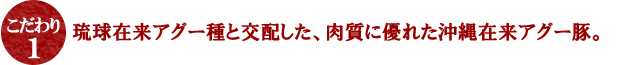 沖縄在来種アグーと良質な白豚をかけあわせたこだわりの豚。
